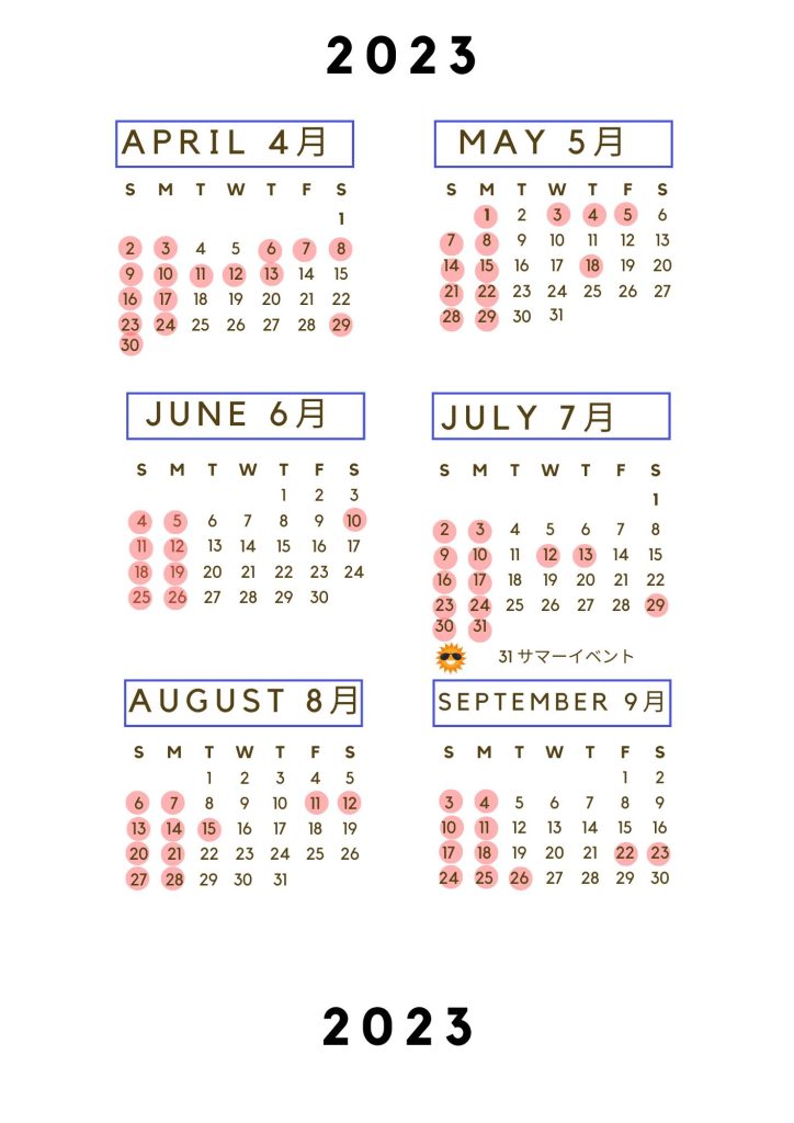途中の変更がございますので、必ずカレンダーをご確認くださいませ。